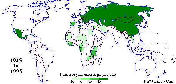 | Russia | Communist Party | 1917 | 1991 | 46 |
