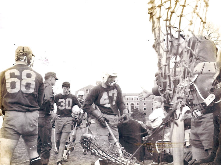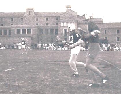 Notre Dame vs U of Colorado Notre Dame 13 Colorado 8 Marty Stoehr (#47)returns to the bench following his first goal of the season. Lou Blaum is #68; Duncan MacIntosh is #30 Duncan MacIntosh (right) moves up the field vs the Buffaloes