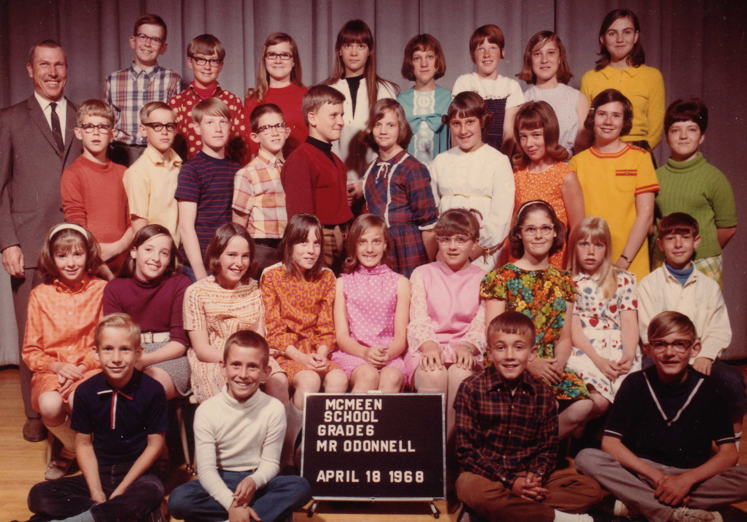 Sixth grade. Mr O'Donnel's class. I was going through puberty a bit early, and in the worst possible way. In this picture, I was so fucused on one of the girls, that I completely forgot about the picture. Ican't remember which one I had the crush on that week, but it's pretty obvious which side of the picture she's in. Fortunately, I was too bashful to do anything about it, other than just be their friends. | |