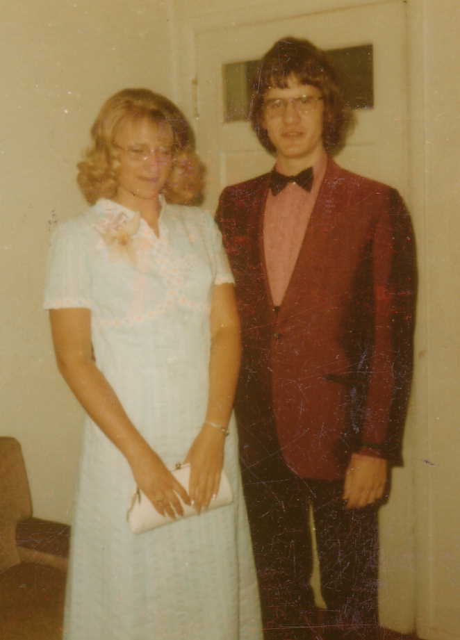 Brian Lafferty, the friend with whom I built the Airplan, started fixing me up with his girlfriend's friends. After 2 or 3 dates, girls from Hinkley were asking Brian's girlfriend for a chance to go out with me. Eventually I met Christy, and that was it. I dated Christy, who went to school at Hinkley High school. No one even knew I liked girls until she came to the all school show show at George Washington. Christy took me to her Senior Prom as shown in this picture. She was 2 years older than me). She always loved that no matter how much fun she was having, I always behaved like a gentleman. Eventually, we broke up because I was doing summer theater in the morning, then going to work all ofternoon and usually well into the evening. I commuted nearly 20 miles each day by bicycle. | |