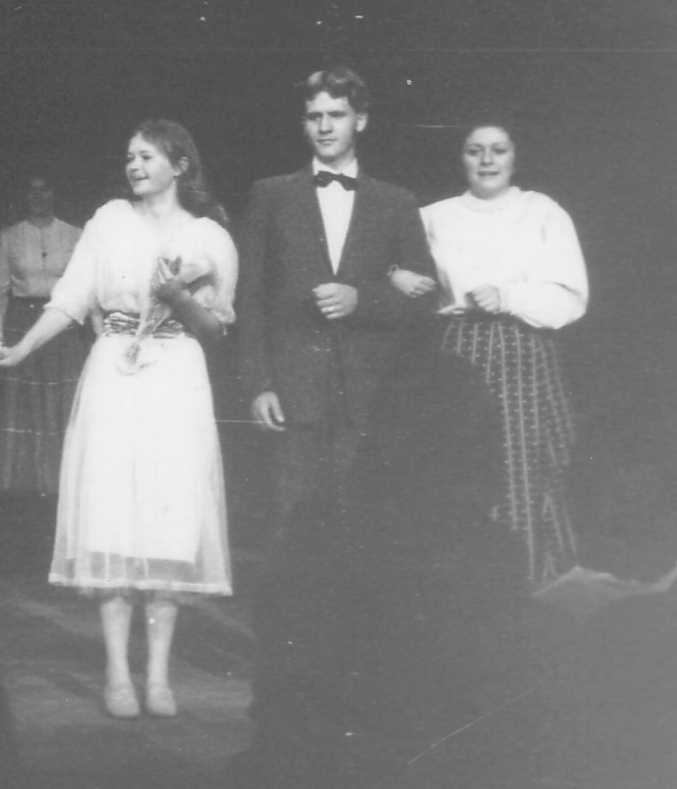 Here is the Production of Our Town. I'm with Jan Monday, and Linda Ingram. I had a serious crush on Linda, but she was into "Hunks", and whatever that was, I wasn't. Still, we became very close friends, along with Karen Morris, Larry Knott, Houston Hill, Doug Yetter, and several other close friends. Our favorite game was "truth", which was truth or dare, but the dares were so outrageous that no one dared to take a dare. | |