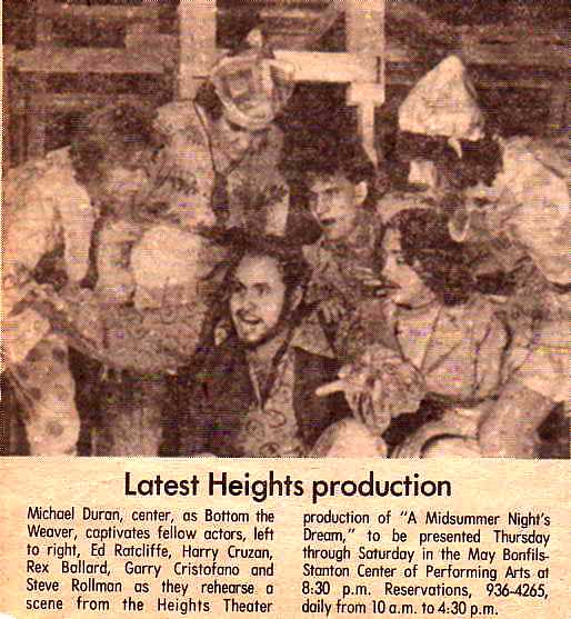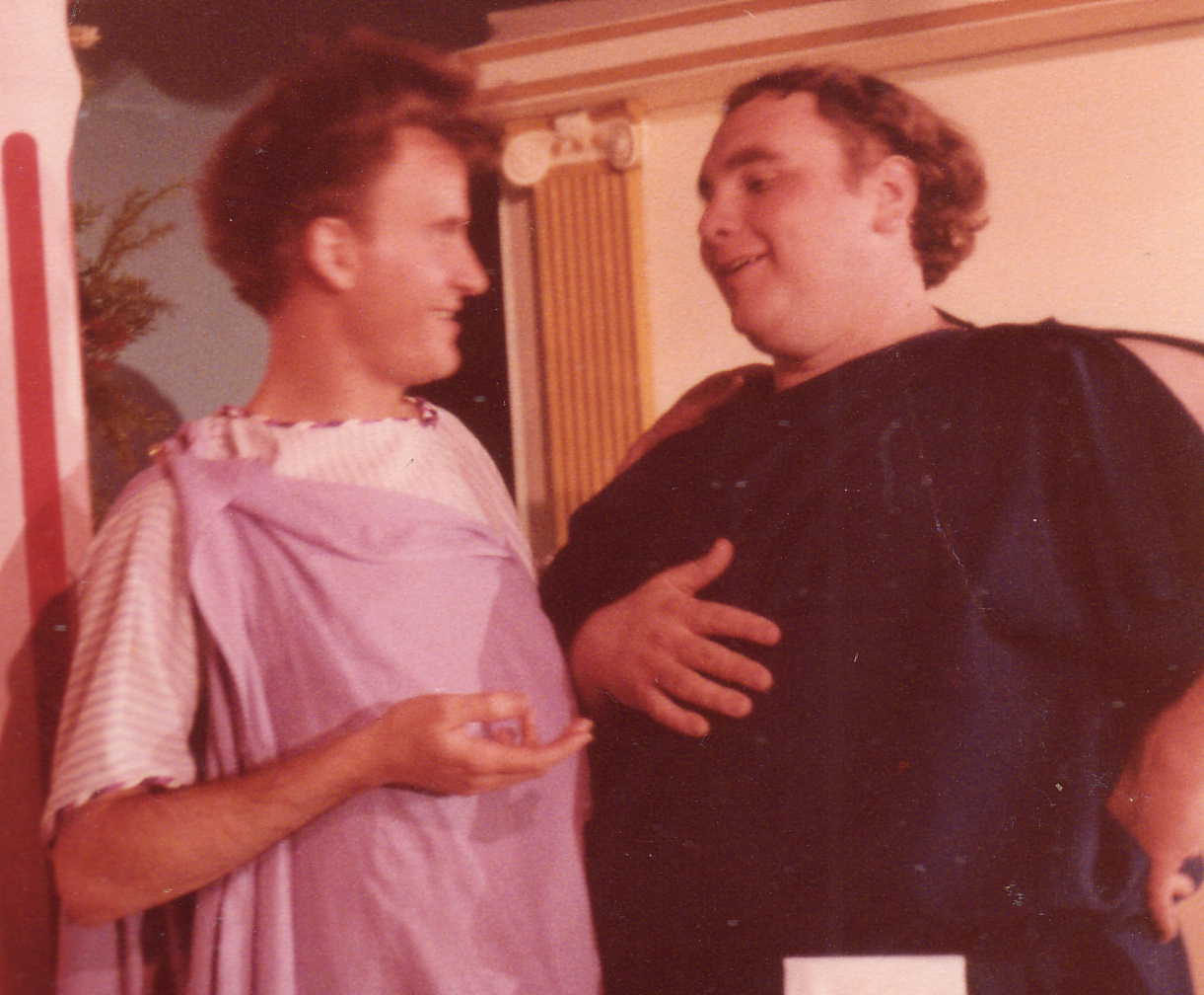 Here I am at Olde Town Dinner Theater in Colorado Springs, Colorado, playing Marcus Lycus. It was a really fun role, and I was really happy to get back into Professional theater. Between tips and daily stipends, I was one of the most highly paid actors in Colorado. I also got 100% clean, including getting off the Tegretol I had been taking for Epilepsy. The withdrawal was hell, often causing severe headaches that often lasted all night long. After 3 months of this agony, the pain left, and I was tested for epilepsy. Everything came up completel normal. It seems that the original diagnosis had been based on symptoms of withdrawal from recreational drugs and alcohol taken 72 hours before my EEG in 1970. | |
