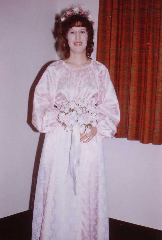 This is Leslie as the Blushing Bride. She wore pink because this was her second wedding. It was a very simple affair, with close family and friends. It was a little bit tricky because Mom & Dad were divorced and didn't spend much time together. | |