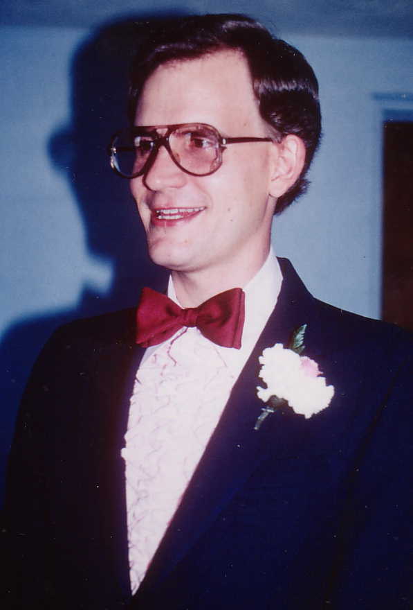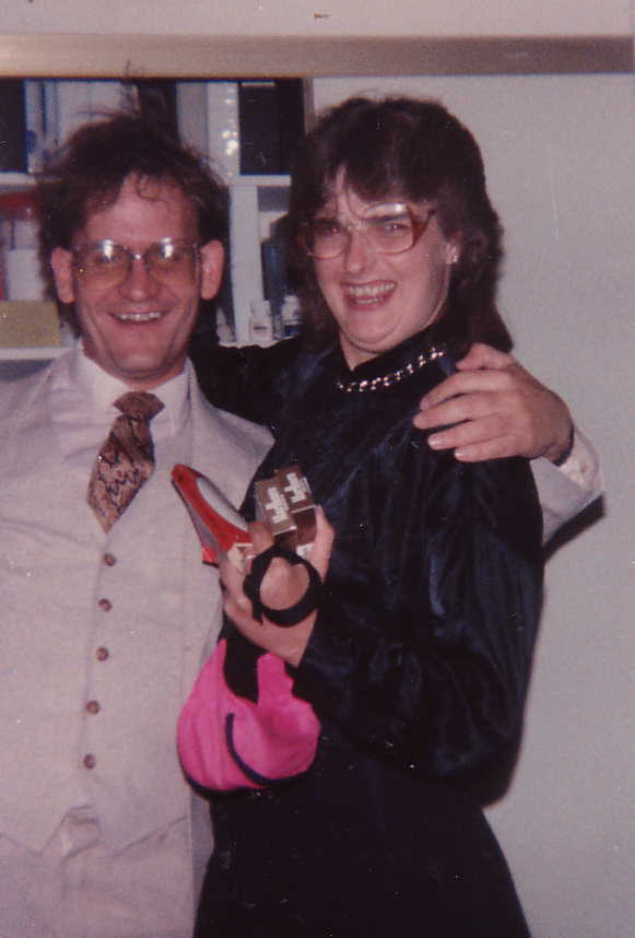 Husband and Father. This is one of the few family pictures of the three of us together. We really had a good time during this period. I worked pretty insane hours, but from Friday evening to Sunday night, I would take Nick, and give Leslie a much needed break. We'd go shopping, go to meetings, go pretty much everywhere, together. I'd also videotape the saturday cartoons, and watch them with Nicky. Nicky was a big fan of MTV at this age. Although our marriage had become platonic (she was physically unable to have sex for several years), we were still very affectionate and intimate. We'd cuddle all night, often with Nicky in the bed with us, and we'd talk, sometimes well into the night. We had a rule that we didn't fight or argue in bed, and we'd just listen, and share whatever our concerns were. We worked out our finances this way. | |