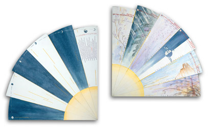 I designed and hand-painted this accordion folding fan for an author of a book on the Chinese calendar. Each section represented a "season" of the year and used traditional chinese imagery, symbols and characters.
