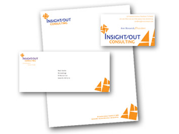 Identity system designed for Insight/Out Consulting, a public relations firm in New York City.