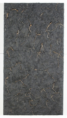 150cm X 75cm. Asphalt and stems of nbarcissus on canvas, 1997